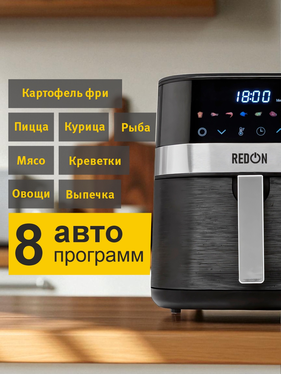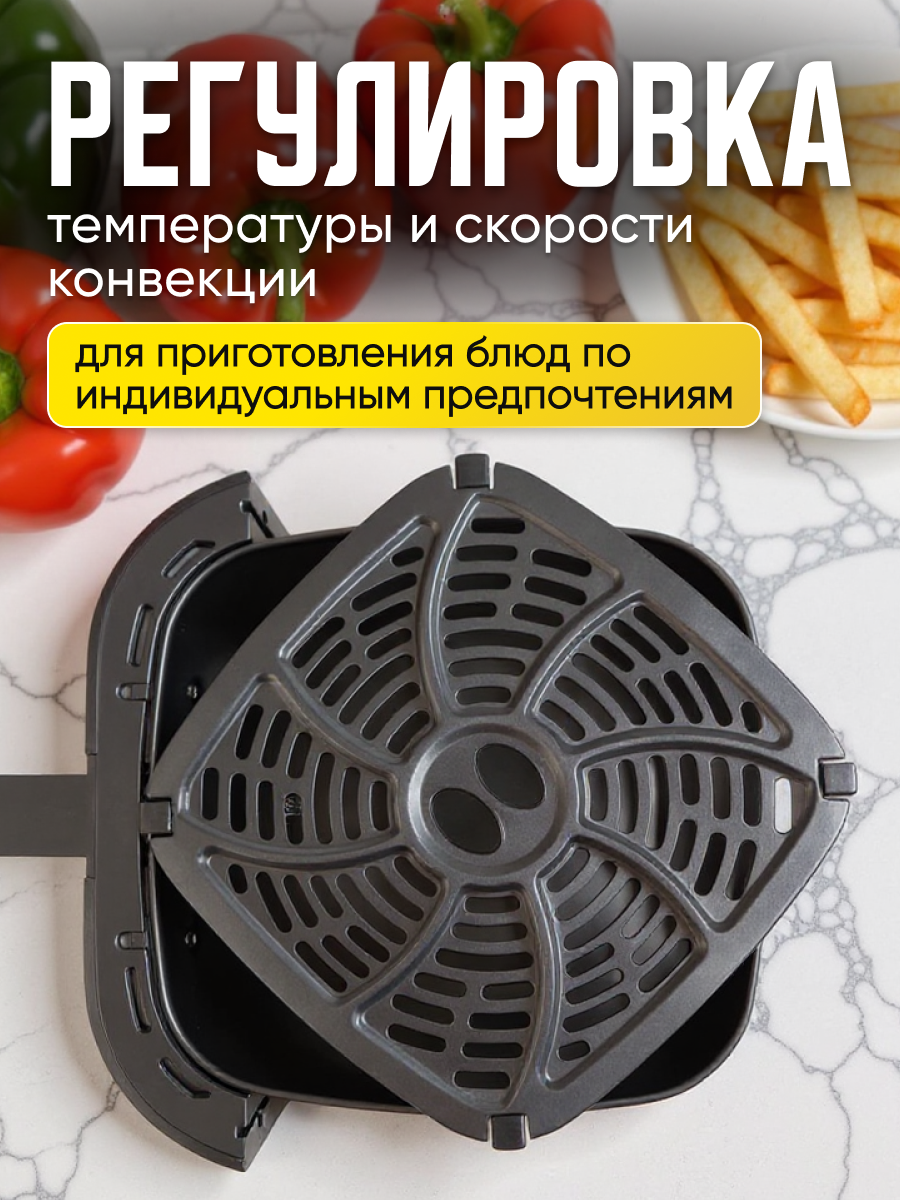 Аэрогриль заменяет сразу несколько приборов: духовку, фритюрницу и гриль. В комплекте вы найдёте печатную книгу рецептов на русском языке, с которой легко начать готовить уже в первый день.